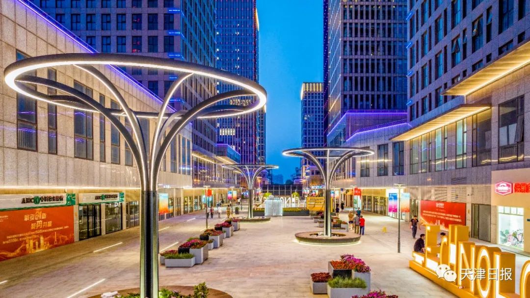 天开园核心起步区格局清晰,分为南区和北区,南区以办公企业为主,北区以办公和公寓为主。“南区主打风格是现代和科技,增加了3个树形灯,还增加了海棠花和莲藕的艺术雕塑;北区设计风格主打活力,我们建设了滑板道还有秋千。”天津市设计研究院有限公司景观所所长张国瑞告诉记者。