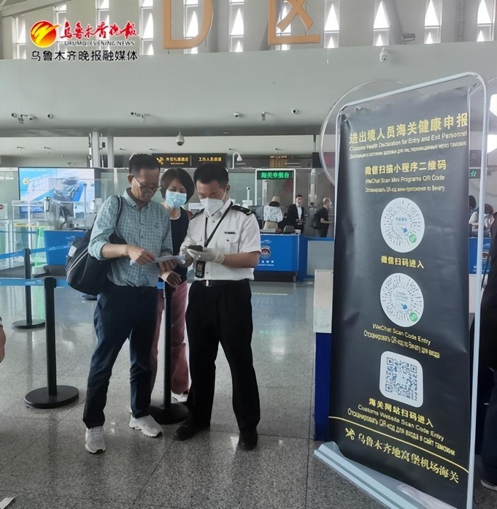 乌鲁木齐地窝堡机场海关关员正在对旅客进行健康申报指导及验核。通讯员张讯豪摄