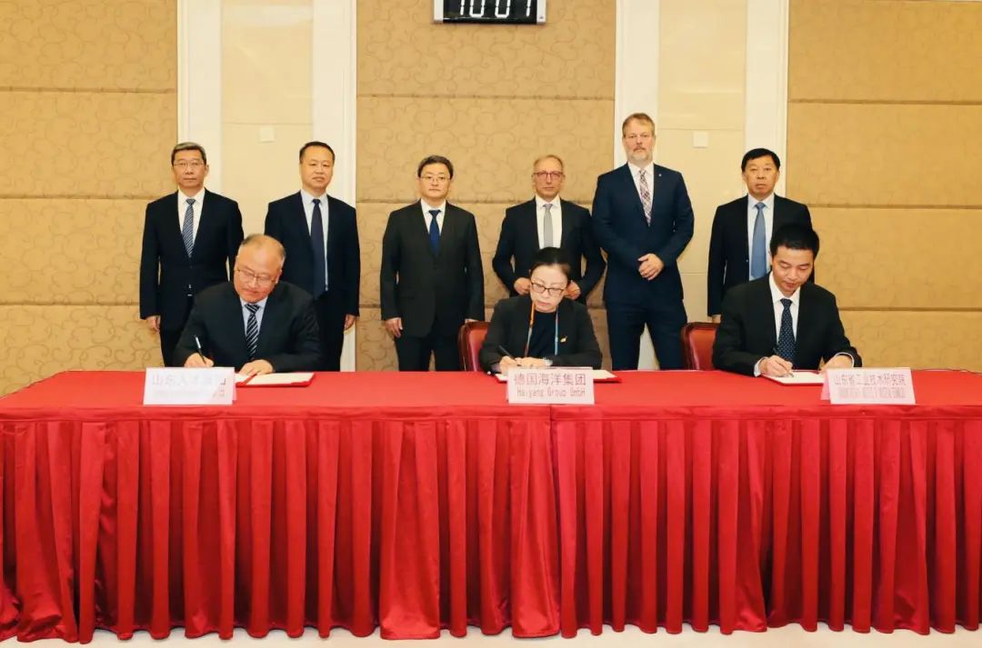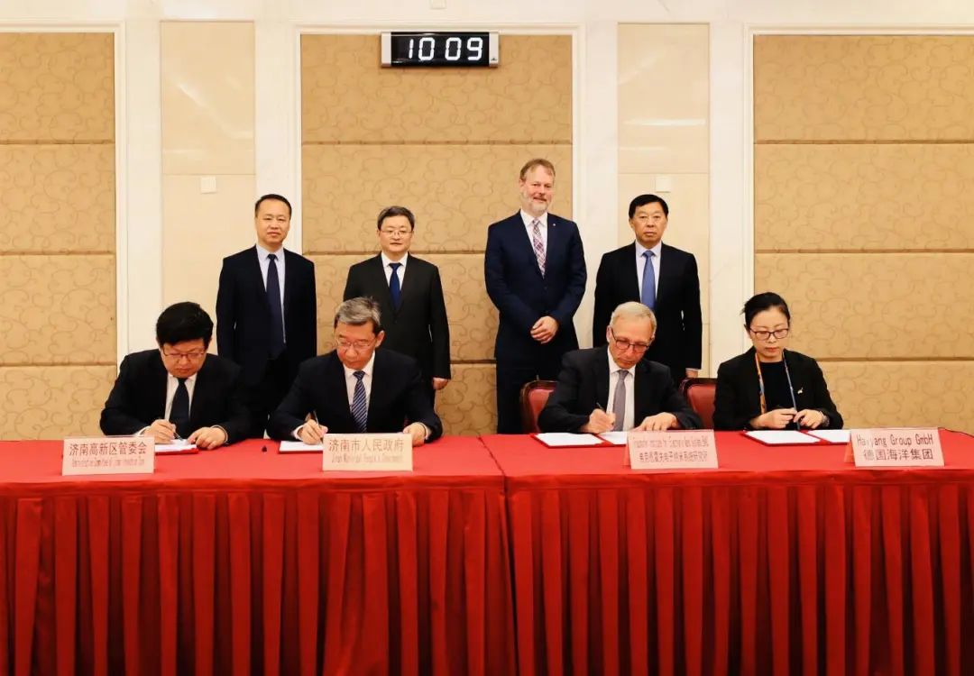 会见结束后,济南市人民政府、弗劳恩霍夫电子纳米系统研究所、德国海洋集团、济南高新区管委会共同签署《关于共建山东中德技术转化与应用创新中心的合作协议》。德国海洋集团、山东人才发展集团、山东省工业技术研究院共同签署《关于共建山东中德技术转化与应用创新中心运营公司的战略合作框架协议》,三方共同组建中心运营公司,以推动山东中德技术转化与应用创新中心高质量发展,建立中德产学研合作生态体系。