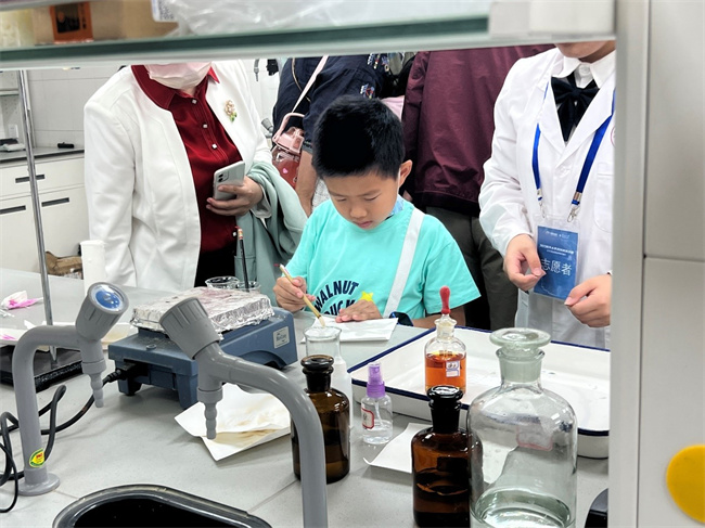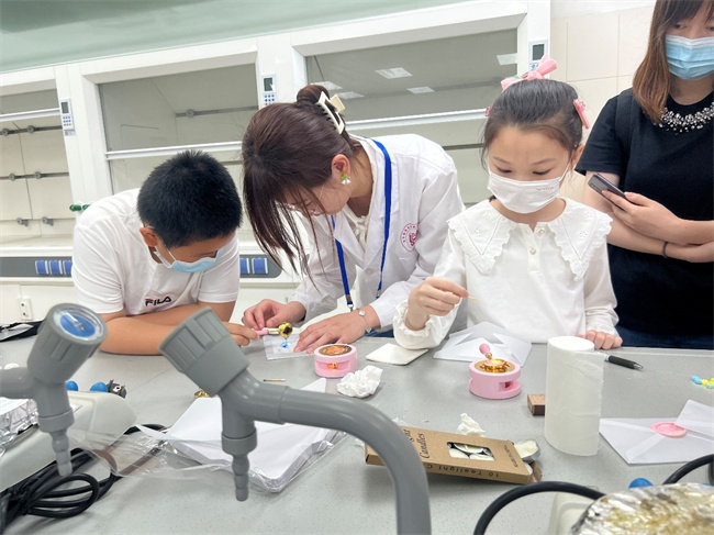 开幕式当天,南开大学生物科普基地和化学科普基地分别组织开展生命和化学开放日活动。生命组活动包括叶绿体的观察、“生化大分子展示的艺术作品”——蛋白质的茚三酮显色反应、“遗传殿堂的艺术珍宝”——果蝇的观察、“走近生物,感受生命的艺术”动物标本参观、草莓的DNA提取、“身边的微生物”视频展示等;化学组活动包括酸碱指示剂变色、密信传书、大象牙膏、沉淀反应、非牛顿流体、牛奶烟花、滴水成冰、水中花园、自制免洗凝胶、口红/唇膏DIY、水果电池、锌空气电池、风暴瓶、黄金雨、自制爆爆珠、量子点材料、隔空取物、炫酷泡泡秀、电影镀形、火漆章、菠菜中的色素提取与纸层析、鲁米诺等。市民和学生“打卡”实验室,参与趣味科学实验,体验了一场知识性、趣味性、互动性俱佳的科普之旅。