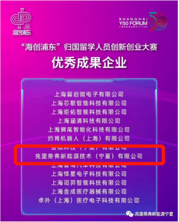 经过层层海选、专家评审,80多家企业入围三大奖项。激烈角逐过后,克里蒂弗新能源技术(宁夏)有限公司获得优秀成果奖,和克里蒂弗公司一同获得此项大奖的还有约肯机器人(上海)有限公司等其他12家企业。