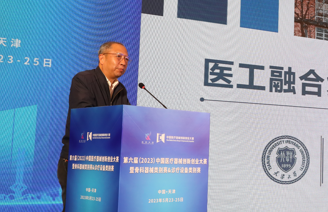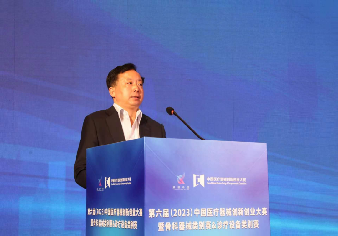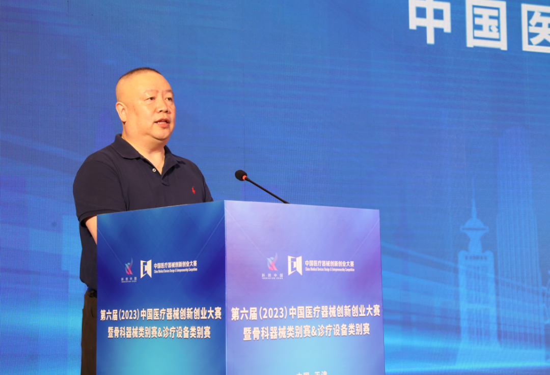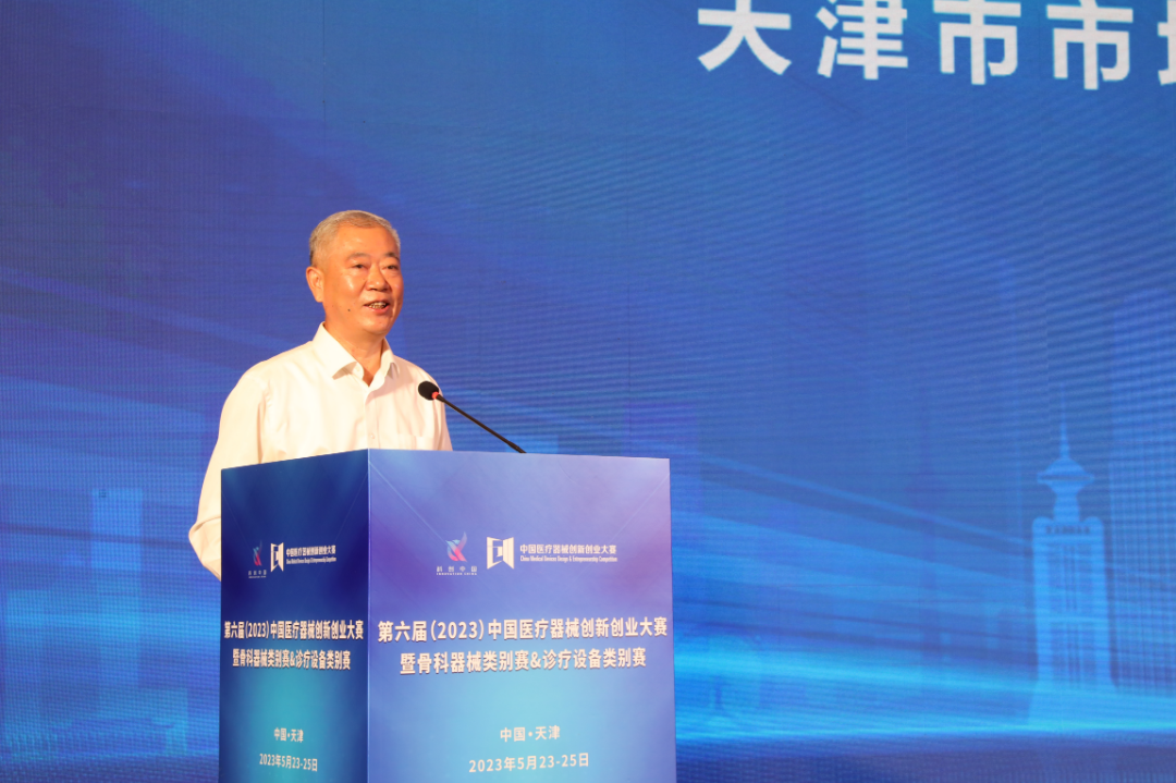 戴东强在致辞中表示,天津市市场委全面贯彻落实党的二十大精神,按照市委市政府要求,扎实落实“十项行动”,推动医疗器械高质量发展,构建医疗器械新发展格局。市药监局遵循医疗器械产业发展规律,依据创新型企业全生命周期成长的需求,结合天津实际、滨海高新区实际,正在全面发力,努力打造开放共享的研发创新平台、小试中试平台,通用制造平台、机构投融资平台,构建我市医疗器械产业完整的创新生态链和产业生态链。举办中国医疗器械创新创业大赛是天津医疗器械创新生态架构的重要组成部分,也是向全国科学家、学者、研发人员和企业家展示天津医疗器械产业风采的好机会,我们将为各参赛企业产品量身定制转化和注册路径,提供合规和技术咨询,为有在津落户意向的企业提供持续的一对一管家式服务,做好贴身顾问,全力支持创新成果尽快上市。