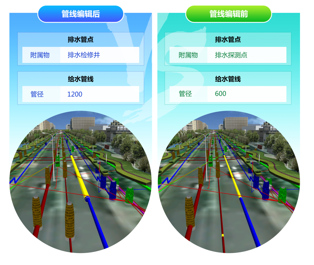 基于低维几何及拓扑特征的参数化语义体模型构建方法,实现了地下管线实时自动化建模、属性信息可视化联动更新及LOD随场景调控,大幅降低了管线数据更新维护的成本,提高了渲染效率。