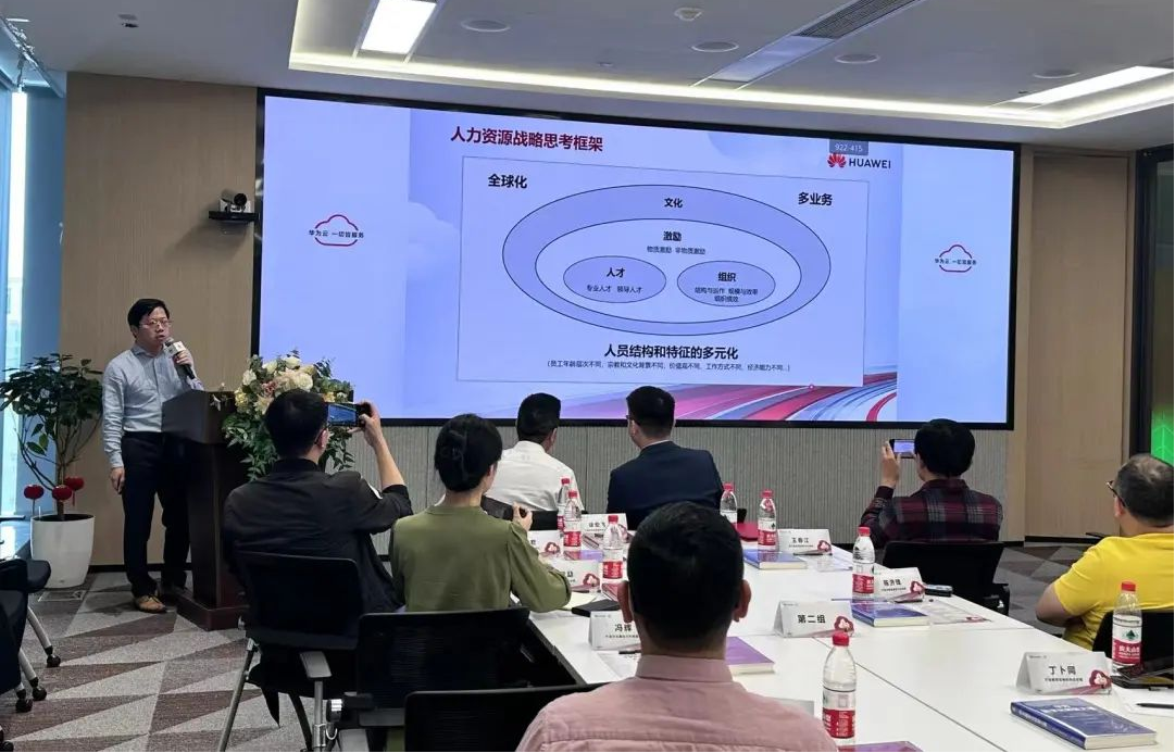 华为云浙江HRBP张浩以“华为人力资源管理实践交流”为主题阐述了华为人力资源管理对公司商业成功与持续发展的作用。