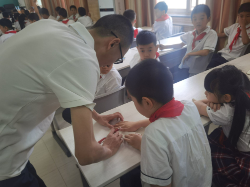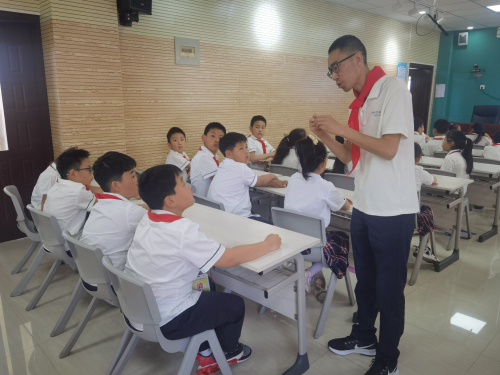 于诗摩是化学专业的博士,但面对有些脑洞大开的问题,这位年轻的科学家也只能诚实地回答:“这个问题我也不知道。”“敢问就很了不起。”讲完课后,于诗摩也很开心,每个问题都眼前一亮,做科研、科技创新工作不怕犯错,最怕想不到,这些孩子思维很活跃,能打破局限。为表达感谢,讲座后,孩子们还给他戴上了红领巾。