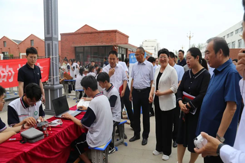 最后王春梅一行参观了3D打印作品、电子板作品、无人机技能等活动展区,深入了解学校近年来取得的教育教学成果,以及办学特色和专业水平。