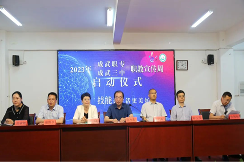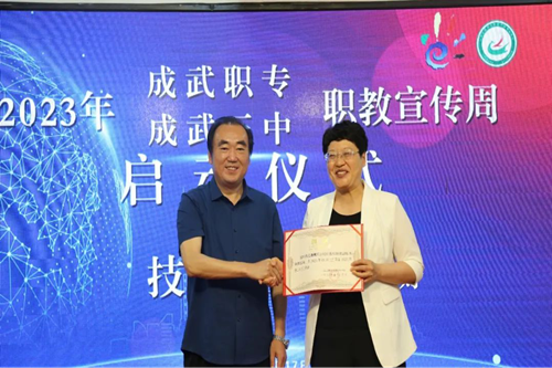 5月17日下午,成武县2023年职教活动周启动仪式在成武职专隆重举行。县科协主席王春梅,县教体局副局长王立新,县人社局就业办主任高照亭,2022年菏泽市“最美青年科技工作者”张淑敏,安徽理工大学客座教授博士生导师,山东水发电力集团研发中心主任陈玉国,成武职专校长张全任参加仪式。