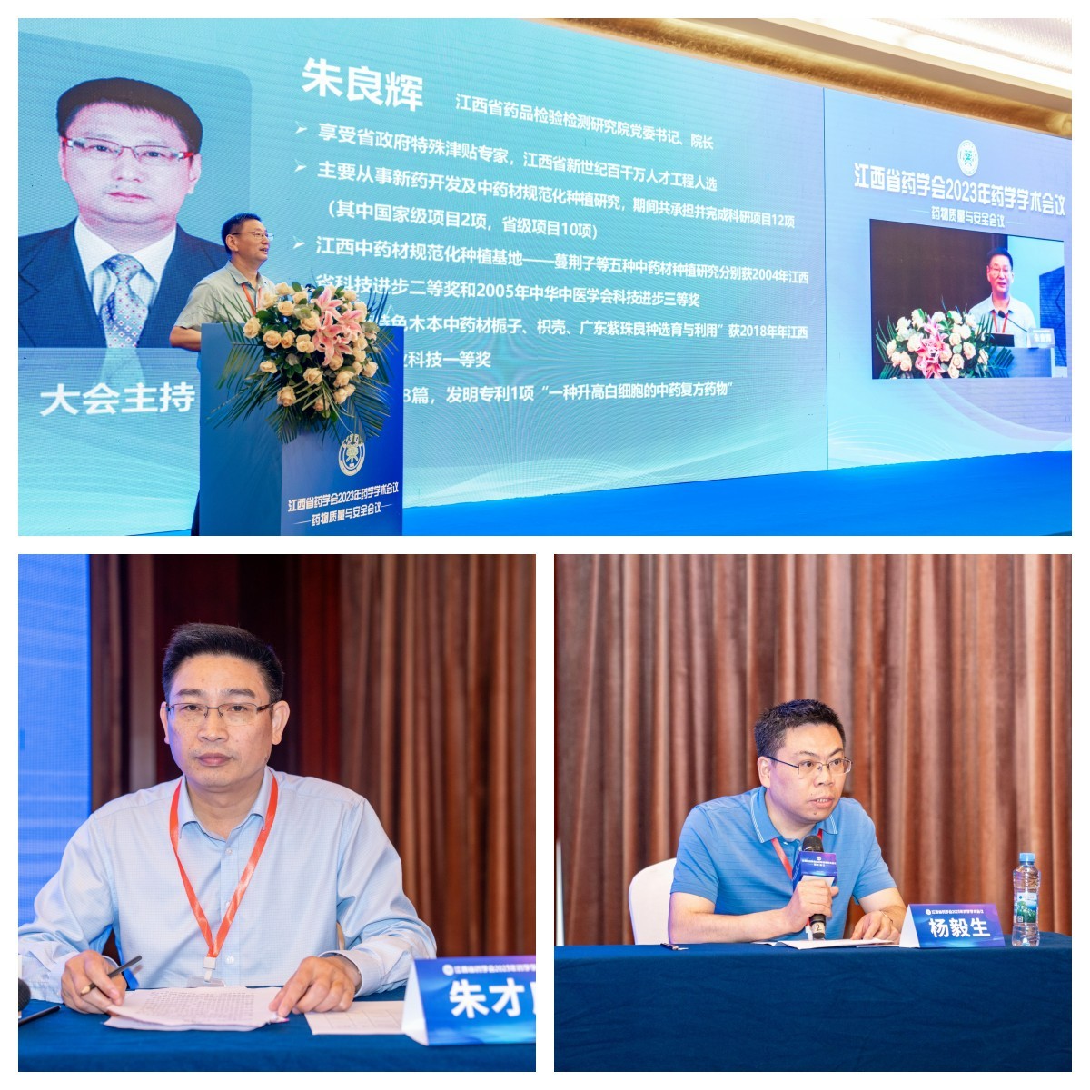 药物质量与安全分会场由江西省药品检验检测研究院党委书记、院长朱良辉,江西省医疗器械检测中心(江西省药物研究所)副主任、副所长朱才庆,江西省药品检验检测研究院副院长杨毅生共同担任主持。
