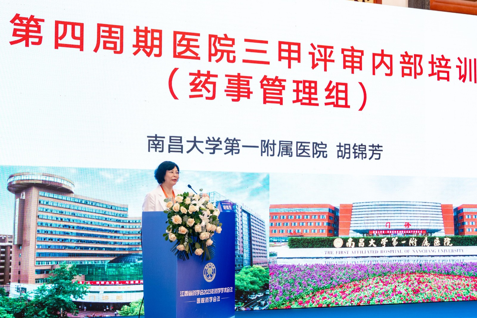 南昌大学第一附属医院药学部主任、主任药师胡锦芳作《医院三甲评审药事管理》专题报告。