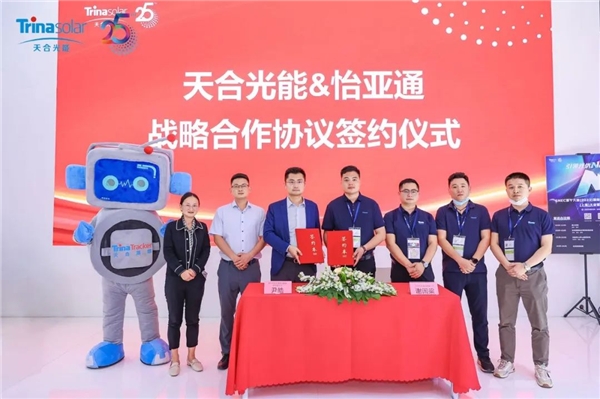 展会期间,深圳市怡云智科技有限公司与天合光能股份有限公司签订战略合作协议,双方将进一步深化合作层次,致力于构建光伏市场高水平、高层次的产业生态,通过强强联合,利用彼此的优势,在新能源领域的项目开发方面开展深度合作,做到优势互补、资源共享、共同发展。共同推动构建清洁低碳、安全高效的能源体系建设,助力实现“碳达峰、碳中和”目标。