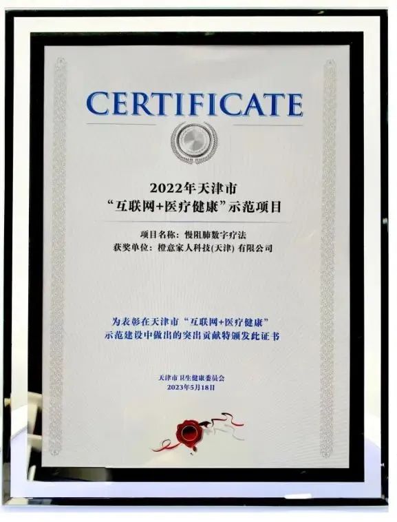 为响应国家慢病防控政策,橙意家人与中日友好医院国际呼吸医学中心再次联合研发出国内第一个获得医疗器械注册证的针对慢性呼吸系统疾病的“橙意OrangerAI数字疗法”。目前“橙意OrangerAI数字疗法”已开始在临床及卫健委慢病管理项目上展开应用。