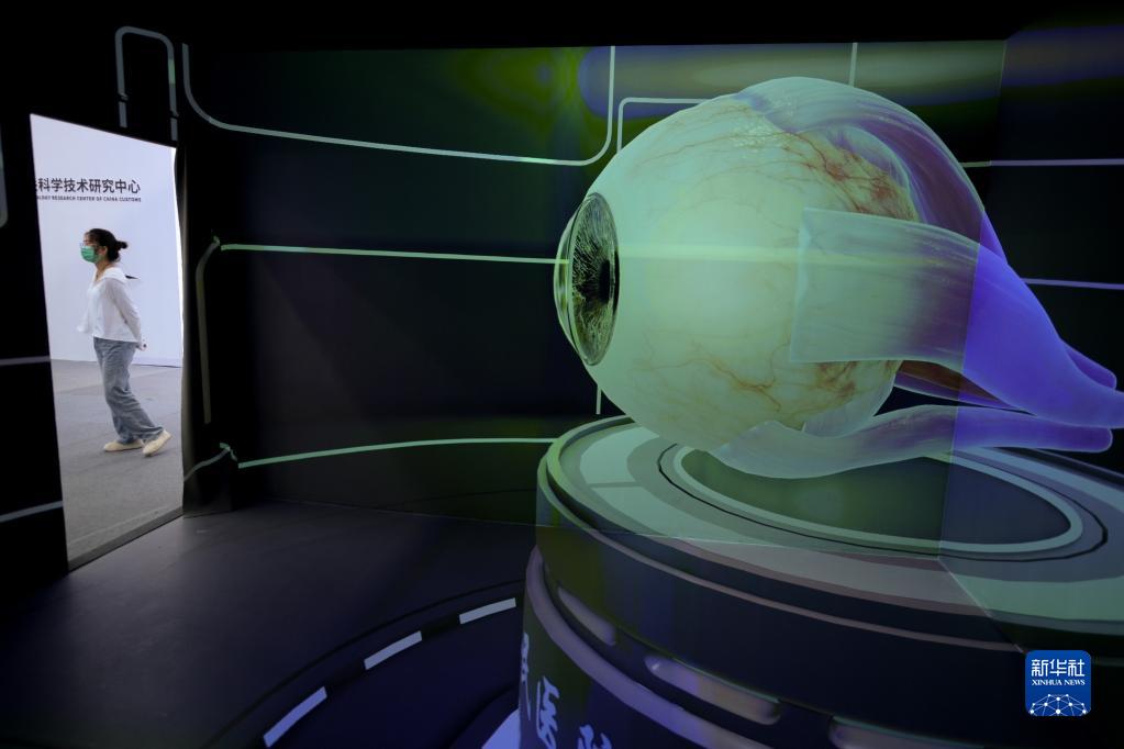 5月24日,在2023年全国科技活动周暨北京科技周活动现场拍摄的通过沉浸式裸眼混合现实技术呈现的防控近视科普宣教空间。 2023年全国科技活动周以“热爱科学 崇尚科学”为主题,于5月20至31日在全国各地举办,重点展示人工智能、生物技术、“双碳”科技等领域的最新科技成果。 全国科技活动周是一项公众参与度高、覆盖面广、社会影响力大的全国性科普品牌活动,自2001年以来已连续举办22届,累计参与公众超过20亿人次。