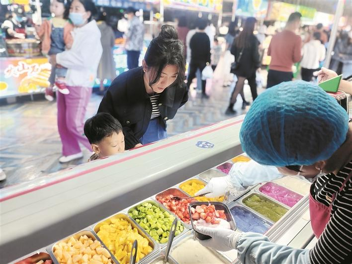 5月23日,市民在十三师新星市天街夜市选购美食。今年,十三师新星市着力优化营商环境,多措并举营造放心安全的消费环境,大力发展“夜经济”,让人气“聚”起来、消费“火”起来。刘琼珂 张国锋 摄