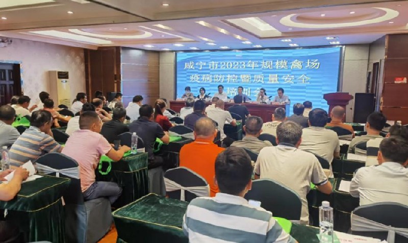 5月26日,咸宁市畜牧兽医局组织举办全市规模禽场疫病防控技术暨质量安全培训会,提升养殖场防疫技能和质量安全管理水平。各县(市、区)农业综合执法大队、禽类规模养殖场负责人共70余人参训。