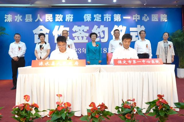 随后,在双方共同见证下,副县长刘帅与院长张志强签署《涞水县人民政府与保定市第一中心医院合作协议书》。