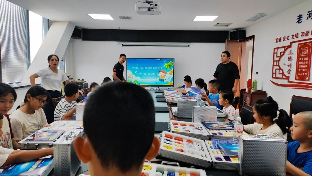 8月6日,由老河口市科技馆和襄阳市人工智能学会联合举办的暑期科技夏令营活动,在孩子们的期待中正式拉开帷幕。本次夏令营开设了多个既贴近青少年兴趣又富含科技内涵的公益课程,包括 “电子百拼及电路控制编程”,“AR视界算法编程挑战”,“七巧科技”,“人形机器人”,“揽月登云”,“环保大作战垃圾分类” 等,涵盖科学、技术、艺术、环保等多个领域。课程设计注重理论与实践相结合,通过沉浸式体验培养孩子们的创新思维和动手能力。活动期间,孩子们热情高涨,现场氛围热烈而有序。