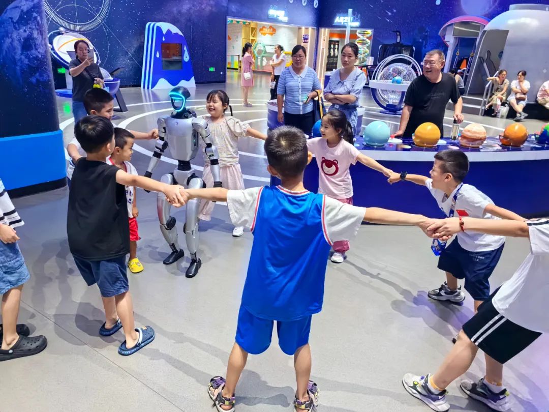 8月9日的人形机器人课程,无疑是本次活动的一大亮点。人形机器人一直是科技领域的热门话题,它们的发展和应用令人惊叹。在本次活动中,人形机器人为孩子们带来了一场精彩绝伦的表演,进一步拉近了前沿科技与大众的距离。孩子们聚精会神地看着机器人握手、击掌、拥抱,当机器人随着音乐跳起欢快的舞蹈,甚至还能演奏简单的乐器时,现场响起了阵阵掌声和欢呼声。通过与机器人的近距离接触,孩子们感受到了机器人的无限可能,也激发了对科技的浓厚兴趣。
