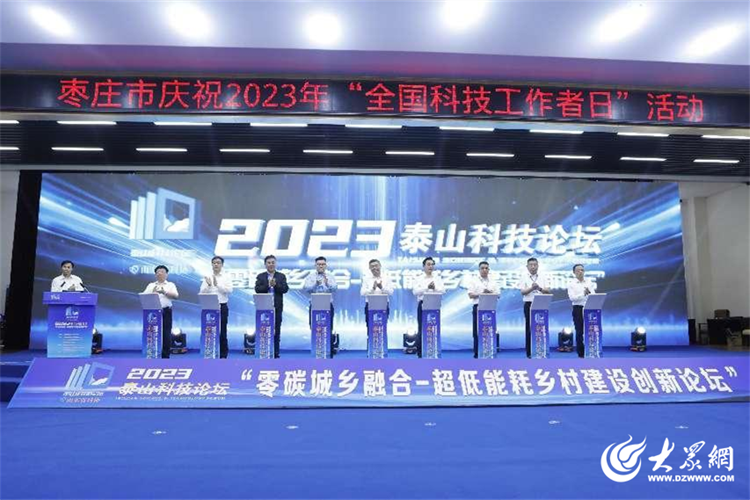 活动中,与会嘉宾共同启动枣庄市2023年“全国科技工作者日”活动暨“零碳城乡融合-超低能耗乡村建设泰山科技论坛”活动。