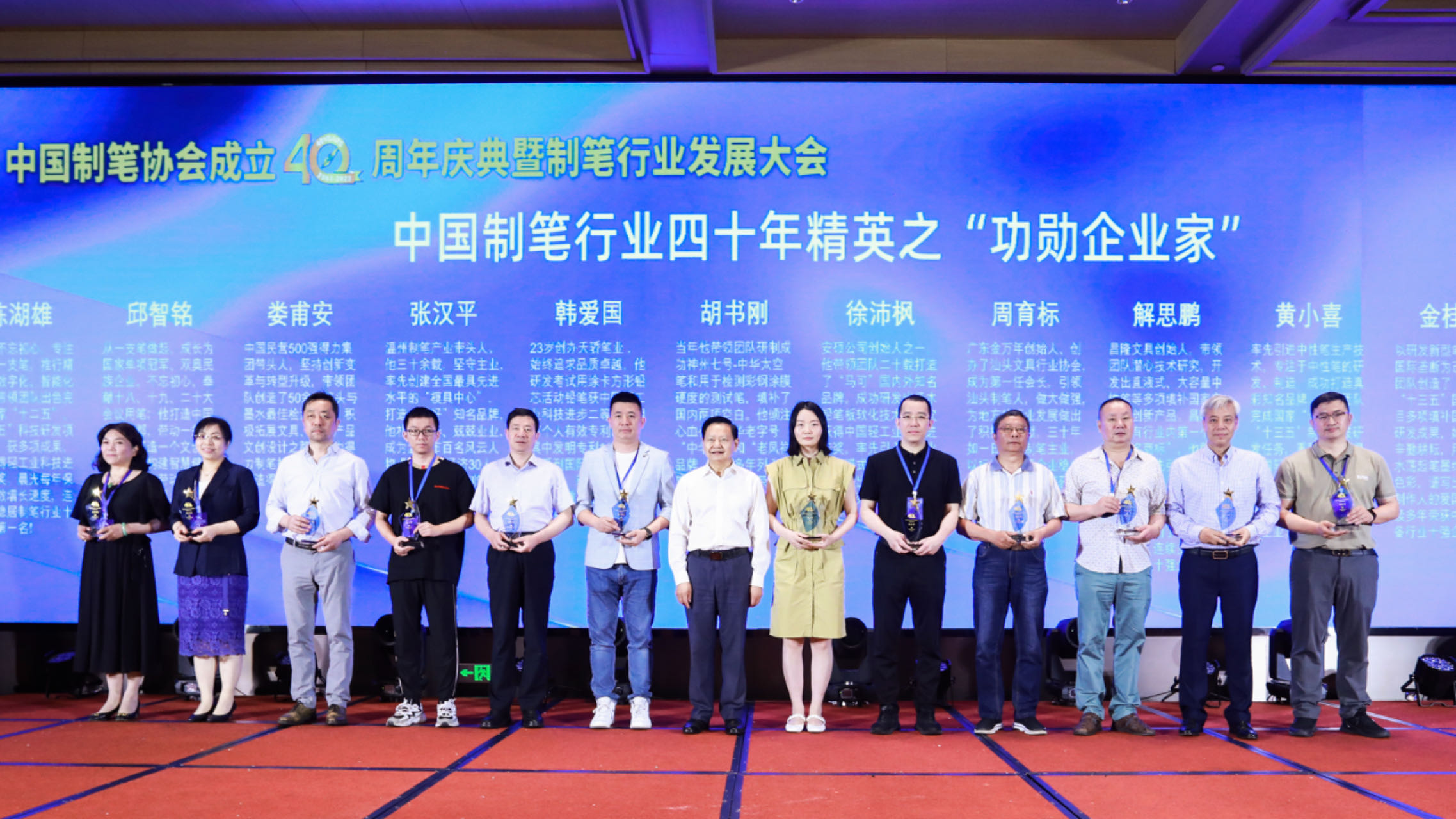 ——协会名誉会长单位贝发集团殷永生荣获“中国制笔行业四十年精英”之“科技先锋”;