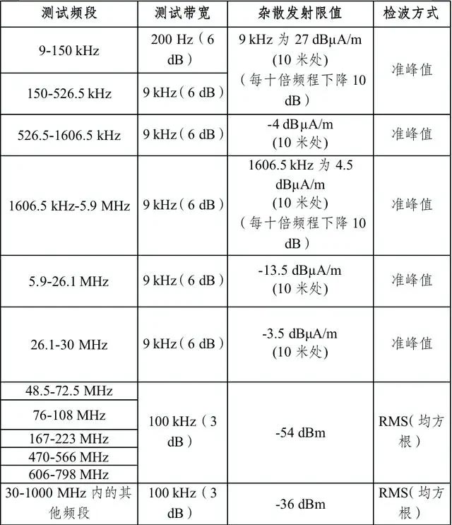 1.移动、便携式无线充电设备,杂散发射限值需满足下表: