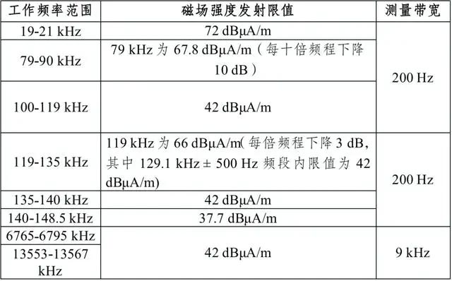 二、磁场强度发射限值(距设备10米处,准峰值测试法)