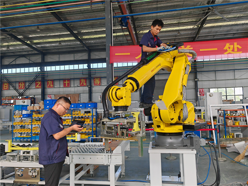 6月6日,记者在咸安经济开发区的湖北志研自动化有限公司的装配车间看到,一条由安徽企业订购的70多米长的汽车轮胎自动装配线正在抓紧组装,上十名工人正在对机器进行最后的调试,预计本月中下旬将发货。