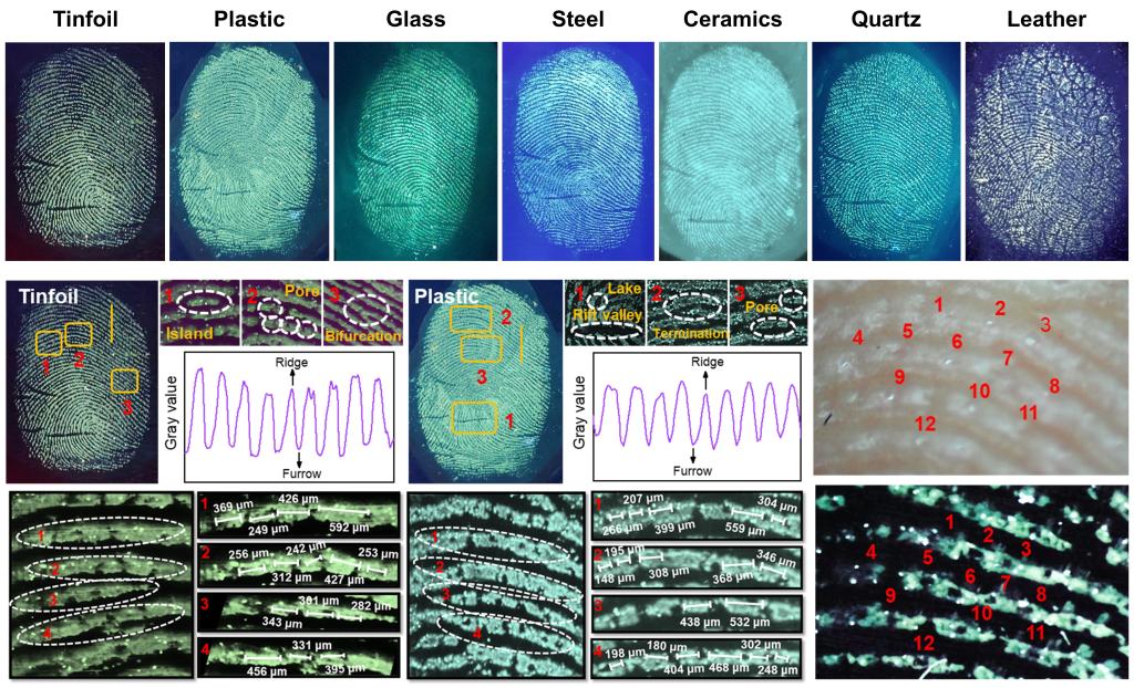 “该指纹显影剂能够实现目前三级指纹特征显影的几乎最佳效果”据研究人员表示,“未来这项技术对身份识别与案件场景指纹证据收集具有重要意义。”