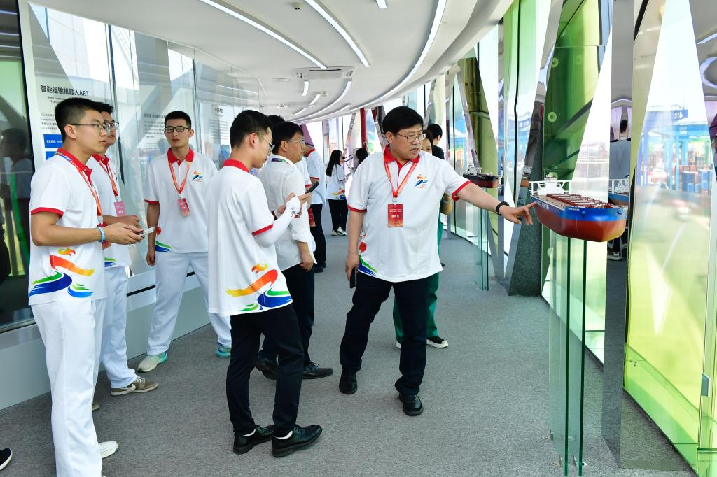 第九届中国国际“互联网+”大学生创新创业大赛“青年红色筑梦之旅”活动6月9日在天津港太平洋集装箱码头启动。活动启动前来自江苏、湖南、山东等地的师生代表们来到了全球智能化水平最高的天津港北疆港区C段智能化集装箱码头开展“牢记总书记嘱托·勇攀制造业高峰主题实践”活动,进行参观学习。