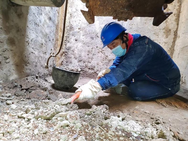 工作人员正在清理一次供暖管网阀门井。