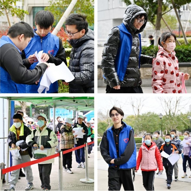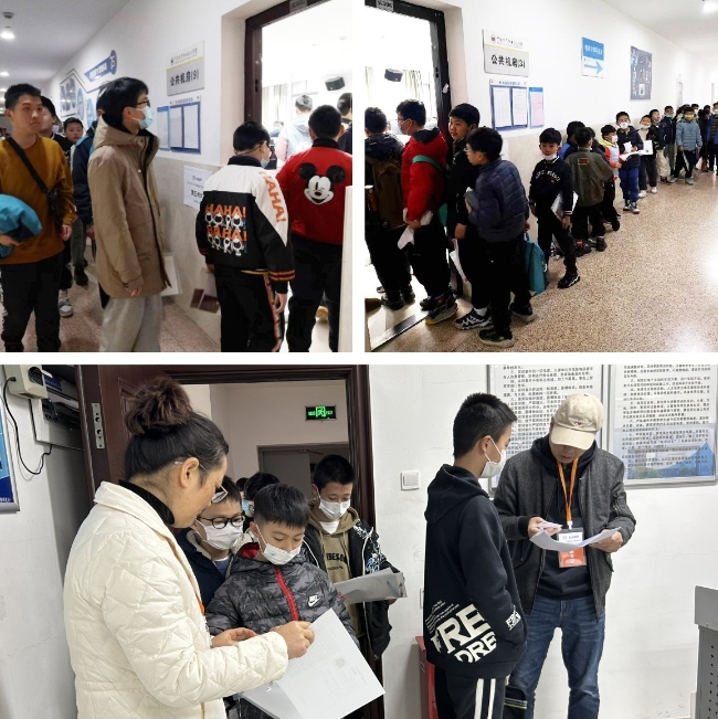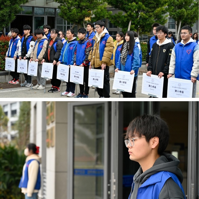 测评当天,考生有序入场,10余名安保人员、50余名志愿者们在校园中提供引导、咨询解答等服务;每个考场设有2名监考老师,另有7名巡考人员全程督导和监察,确保测评公平公正开展;考场外,后勤保障组、安全保卫组、医护组实时待命,10余位考务工作人员实时提供细致的测评工作相关服务,确保测评安全有序进行,让考生安心、让家长和老师放心。