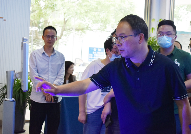 会议最后,与会嘉宾展开交流互动,并对防疫一体机及“无接触”健康系统进行测试体验,且对设备的准确性及技术特点进行咨询互动。此次活动不仅促进了智慧健康专委会与理事长单位的沟通互动,同时也为医疗体系数字化改革工作赋能。