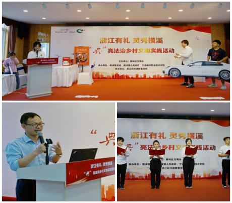 为了加快推进宁波市计算机学会宁波城市职业技术学院分部与横溪镇校地共建深度融合、务实合作,共同谱写党建联盟共赢发展新篇章,2023年6月10日,分部主任徐济惠一行赴横溪镇周夹村参加“浙江有礼,灵秀横溪·‘典’亮法治乡村文明实践活动”。