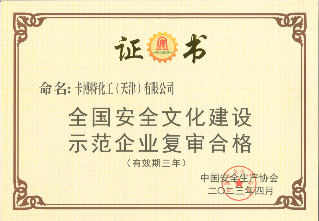 优秀!卡博特天津工厂蝉联“全国安全文化建设示范企业”称号