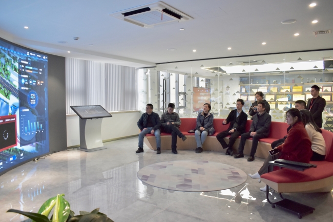 与会专家一行首先参观了美象的办公环境,沿途,朱仁董事长向大家介绍了美象的发展历程,并观看了企业宣传片和数字社区模拟系统等案例。