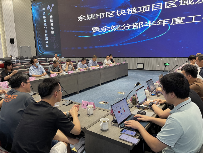 会议最后分部主任总结,根据省试点任务要求,结合余姚实际情况,在确保数据安全可控的前提下,余姚将积极学习其他地区优质区块链建设经验,并希望能借助学会专家平台和专业委员会资源优势,加强交流研讨、拓展场景领域,促进区块链深化应用,希望各位专家教授、区块链技术公司积极建言献策,加快余姚区域区块链应用建设,在年底前积极探索取得阶段性成效。