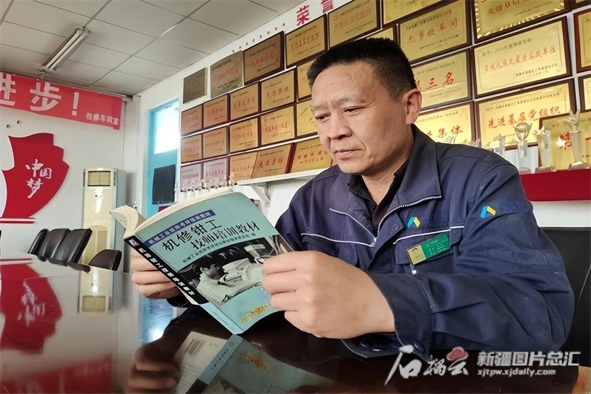 陈兵利用闲暇时间学习更多钳工业务知识。赵雨雁摄