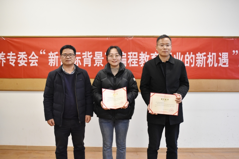 专委会贡献奖会员表彰环节中,授予学会信息素养专委会副主任、宁海县金阳小学科创主任王大财,学会信息素养专委会秘书长、宁波开放大学专业负责人王少华,宁波市镇海区博海培训学校孙鹏等3位个人会员“信息素养专委会特殊贡献奖”荣誉,由学会信息素养专委会主任郁大鹏为以上会员颁发证书;授予宁波灵创教育科技有限公司、宁海未来教育科技有限公司、余姚市艺高机器人教育培训学校、鑫珂(宁波)科技有限公司、象山童心智造科技培训有限公司、宁波未来号教育科技有限公司、宁波维乐城教育信息咨询有限公司、创趣芯宸文化传播有限公司、宁波镇海海文科技培训有限公司、宁波森创信息科技有限公司、宁波码粒奥编程培训有限公司、宁波蓝豚信息科技有限公司等12家团体会员“信息素养专委会特殊贡献奖”荣誉,由学会信息素养专委会副主任王大财、林铁刚、信息素养专委会秘书长王少华为以上会员颁发证书。