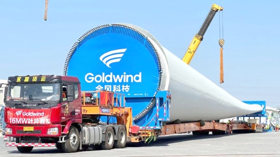 本报讯(融媒体中心 孙艳平)6月14日,由北京经开区企业金风科技参与研发的16MW(兆瓦)海上风电机组123米超长叶片,在江苏连云港整装待发,将被运往福建平潭外海的海上风电场。该款机组刷新了全球最大单机容量、全球最大叶轮直径、单位兆瓦最轻重量三个纪录。