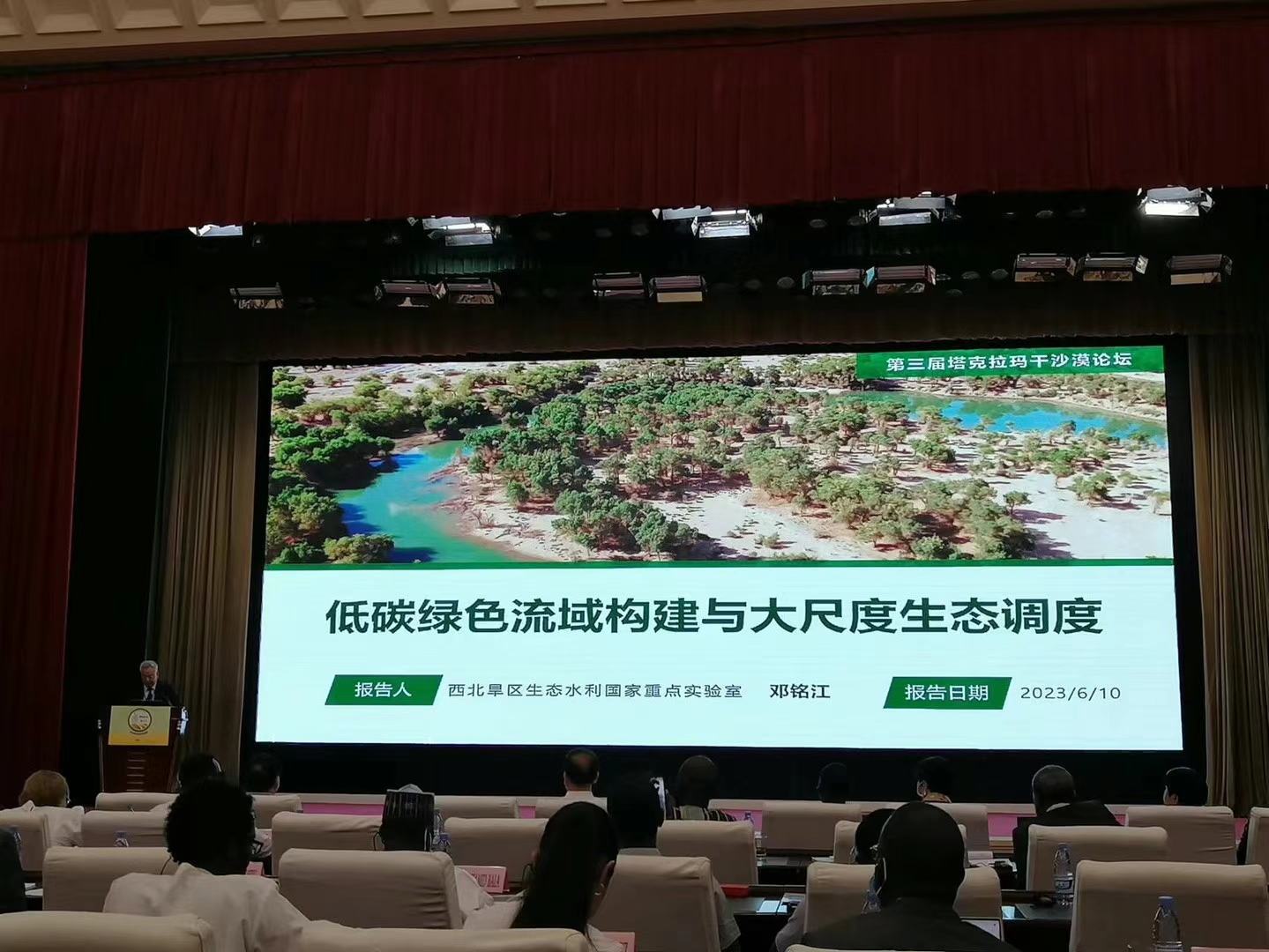 会上,中国工程院院士、新疆科协主席邓铭江,联合国环境署国际生态系统管理伙伴计划(UNEP-IEMP)张林秀主任,中国科学院新疆生态与地理研究所正高级工程师王永东分别以“低碳绿色流域构建与大尺度生态调度”、“Ecosystem Restoration with Nexus Approaches: Actions, Impacts and Implications”、“中国支持非洲绿色长城建设的研究基础与合作建议”为题作主旨报告。