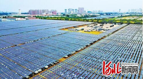 6月9日,走进位于定州的河北长安汽车有限公司屋顶分布式光伏电站,记者发现这里就像一座大型停车场,与一般停车场不同的是,车棚的棚顶是由一块块蓝色的光伏电池组件铺成的。