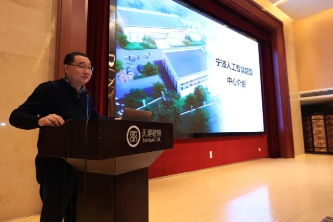宁波中科智能计算科技有限公司总经理杨宁华带来了介绍宁波人工智能超算中心的专题报告,进一步说明了超算中心的相关情况。超算中心一期项目于1月10日正式上线运营,一期算力规模在100p,相当于5万台高性能电脑算力,后期将会达到300p,将满足宁波市产业、科研、社会治理等各领域的算力需求。超算中心重点打造“智算+超算”融合、本地化服务支撑、普惠算力、信息安全、适配认证、商用软件支持等优势服务,带动智能产业,打造智能生态。