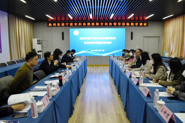 2023年1月11日下午,宁波市科协刘立群主席、施英副主席一行携珠海市科协刘治民主席一行10人莅临学会指导调研,学会理事长徐建昌、秘书长林洁携秘书处工作人员热情接待。
