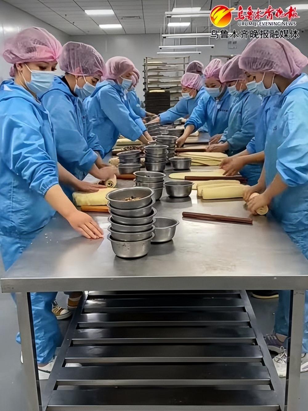 6月23日,新疆夏贝尔食品有限公司员工正在赶制一批来自广东的列巴订单。记者牟敏摄
