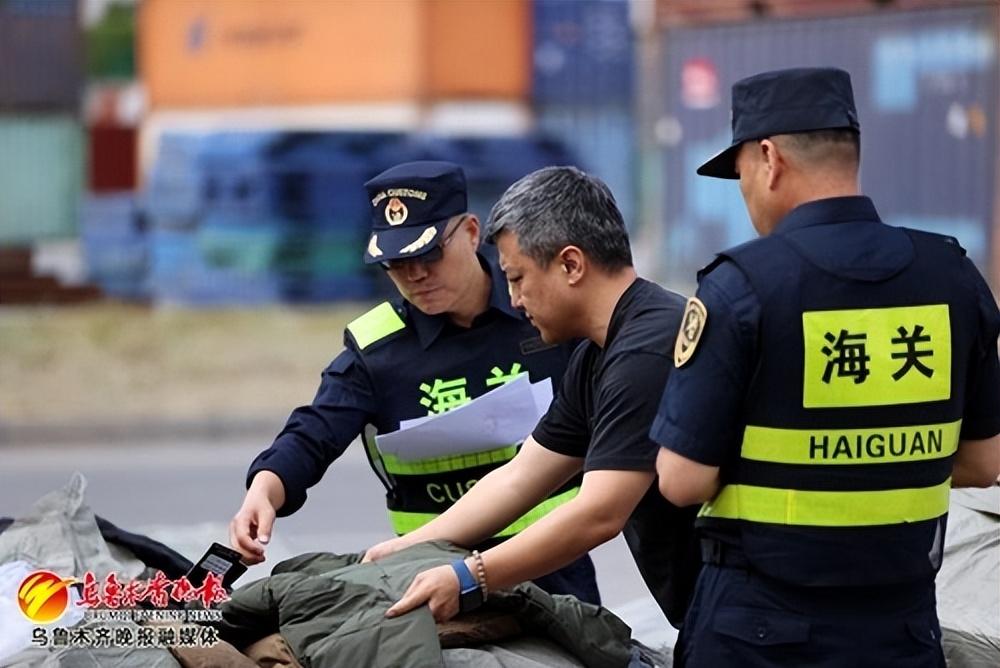 乌鲁木齐国际陆港区多式联运中心,乌昌海关关员在查验出口到中亚国家的服装。记者石磊摄