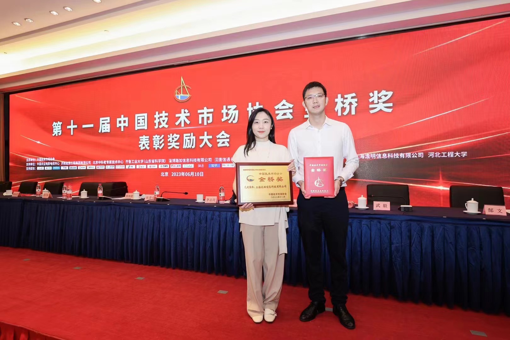6月10日,构建新发展格局·建设中国式现代化高层报告会暨第十一届中国技术市场协会金桥奖表彰奖励大会在北京召开。经上海市技术市场协会提报推荐,迈科技荣膺金桥奖先进集体奖!迈科技联合创始人兼COO蔡文怿、区域创新中心总监舒乐代表全体迈科技人赴京领奖。