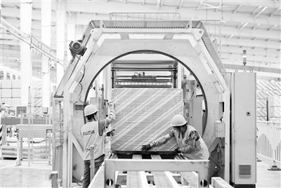 图为6月25日,工人在隆化县泰山石膏承德有限公司生产车间忙碌。新华社记者 金良快 摄