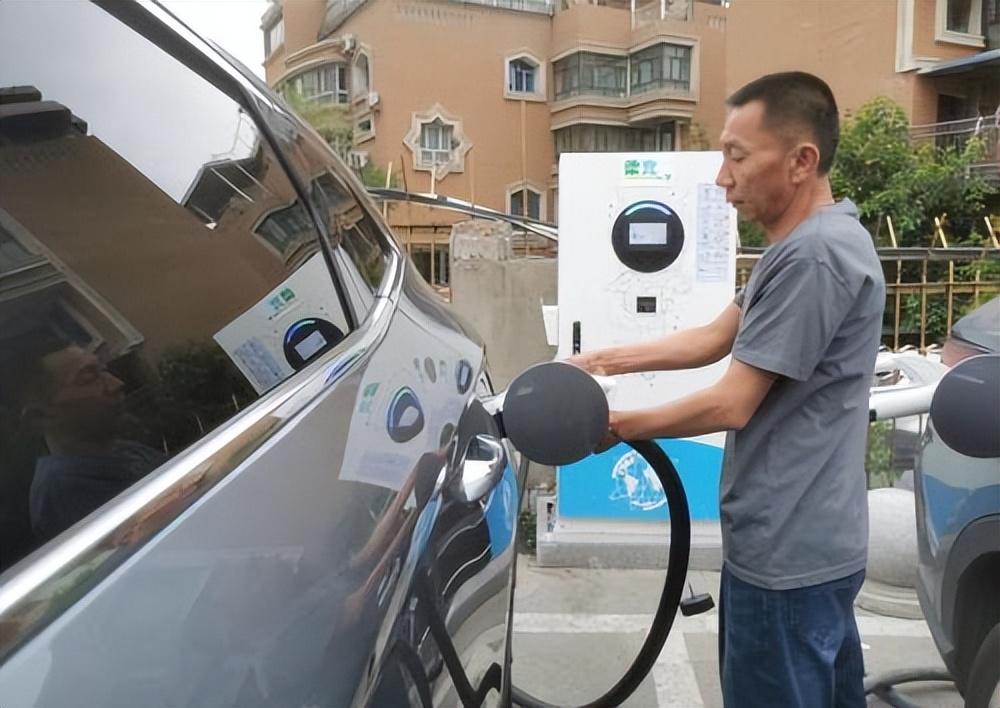 6月26日,在大巴扎景区阿凡提餐厅停车场,一位新能源车主正在使用充电桩为车辆充电。记者王艳红摄