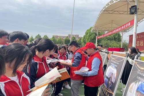 活动现场,科普志愿者摆放了科学家精神系列展板,为师生们讲解科学家故事并发放科普书籍和科普宣传页,引导和培养学生们的科学兴趣,提高学生创新意识和科学素养。