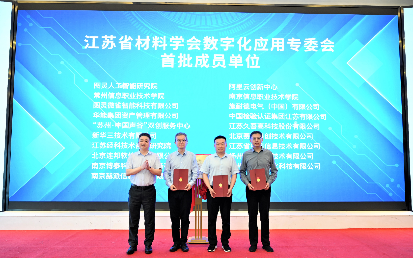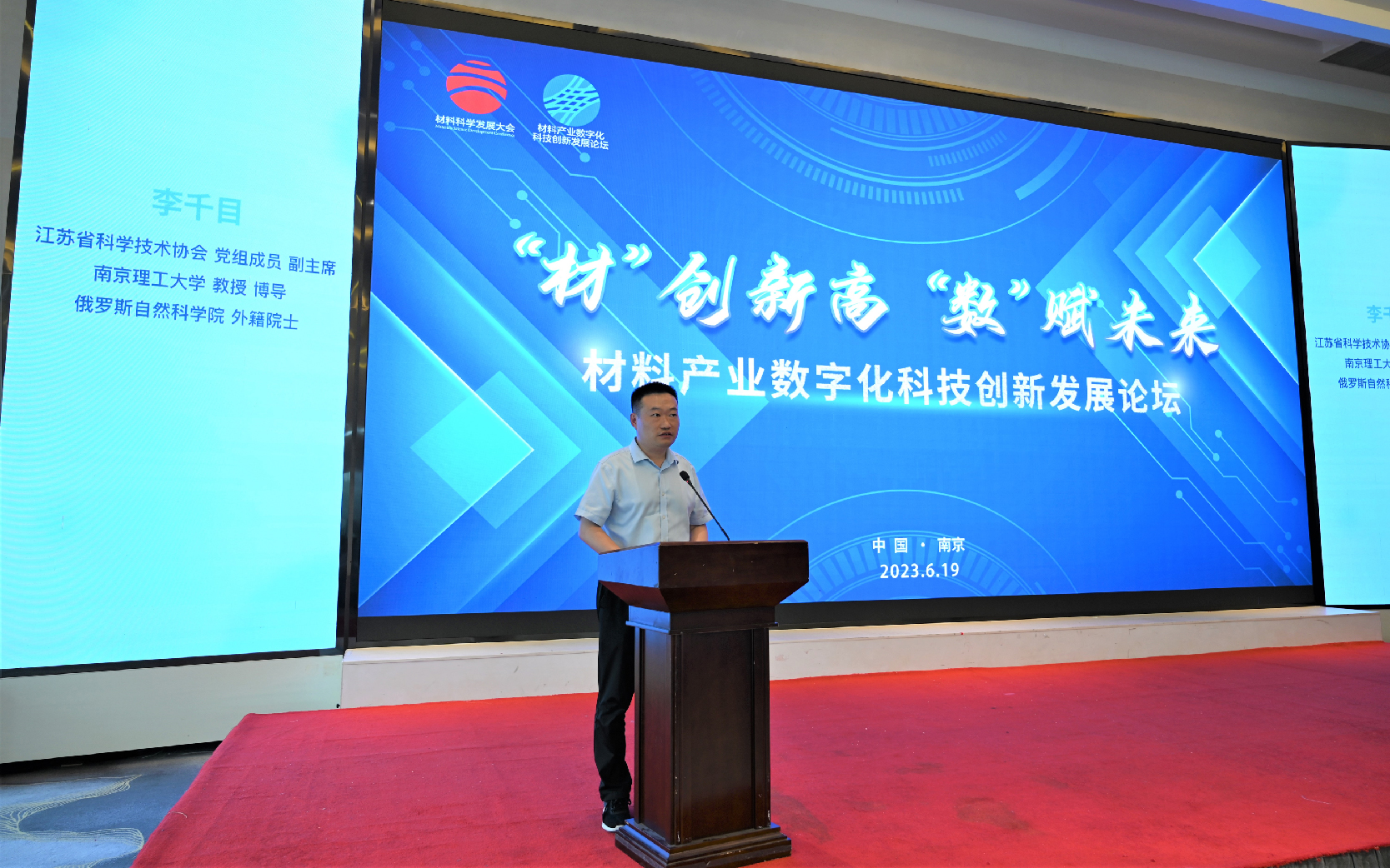 6月19日下午,“材料产业数字化科技创新发展论坛”在南京栖霞区召开。论坛由“科创中国”江苏科技服务团牵头单位江苏省科学技术协会、省工信厅指导,“科创中国”江苏科技服务团成员单位江苏省材料学会和南京图灵人工智能研究院主办,本次论坛旨在聚焦材料产业发展和数字化科技创新应用支撑,促进企业科技服务质量提升,构建产学研深度融合的科技创新服务体系。助力我省材料产业、制造业的高质量发展,为全面推进中国式现代化江苏新实践贡献科技力量。论坛集聚了材料科学领域、数字化应领域的顶级专家学者,共同分享最新研究成果,探讨数字化应用赋能材料产业未来发展方向。