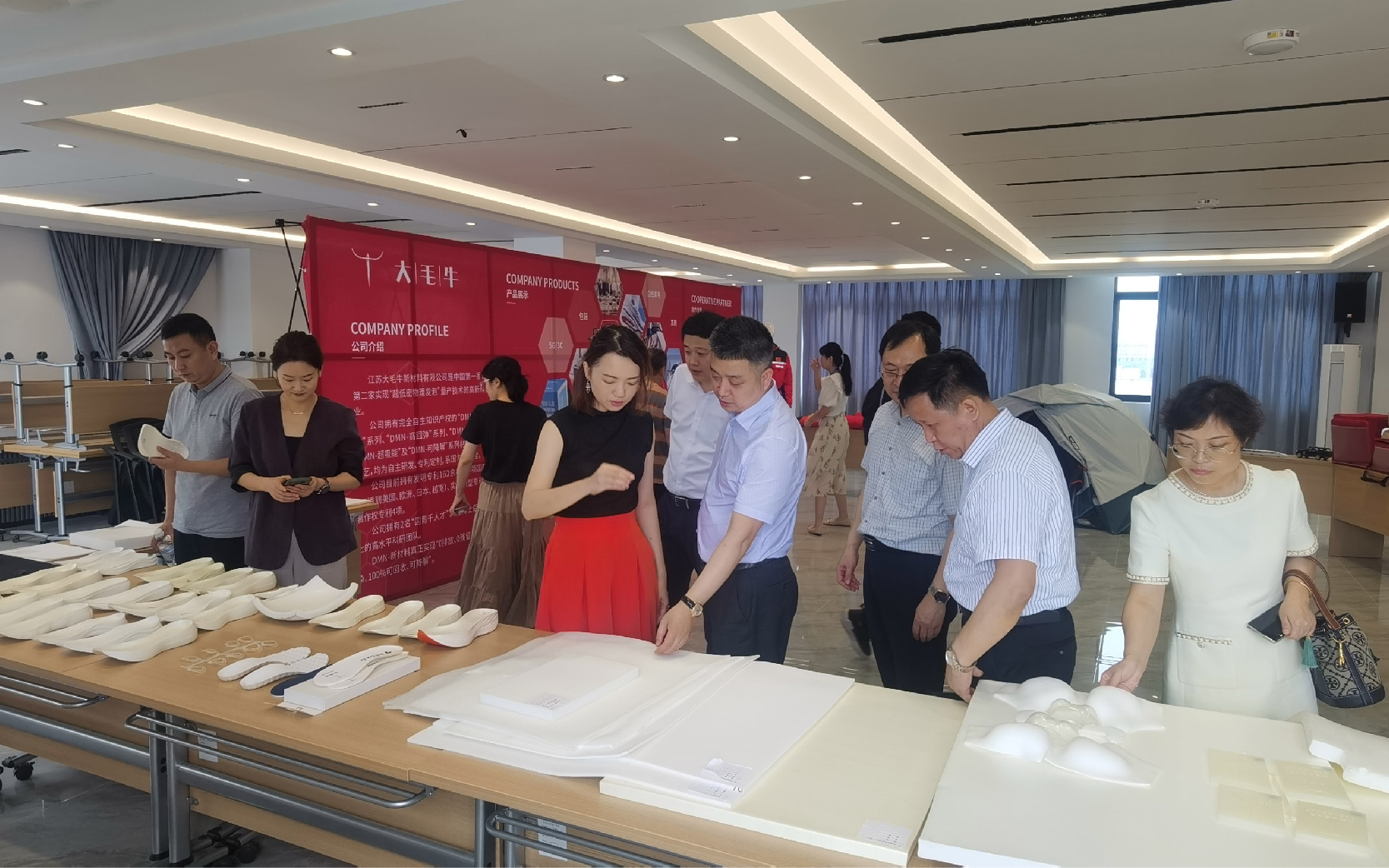 (参观大毛牛新材料公司产品展示厅)